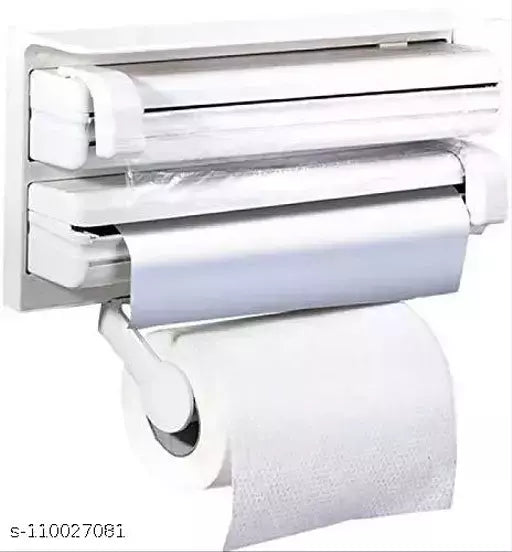 Organize your various kitchen accessories neat and clean by 3 in 1 Kitchen Roll dispenser and make sure they are kept when they use. It is an important, suitable and useful item in your kitchen. It contains wrap films, paper tissues rolls and aluminum foil.